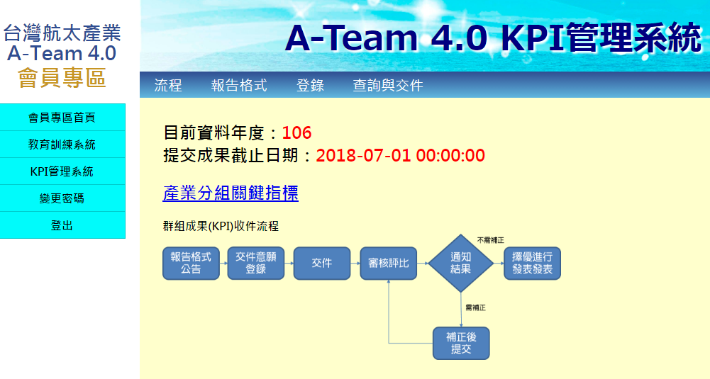 聯盟106年度 KPI 已開放上線登錄與繳交報告,惠請 第一期(2016/06加入)與第三期(2017/07加入)會員們,逕由會員專區執行KPI登錄事宜,登錄期限至107/06/30止。