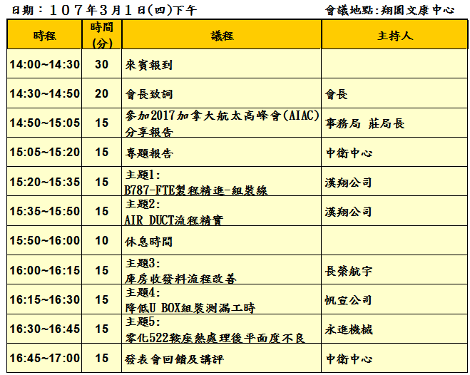 感謝您對「臺灣航太產業A-Team 4.0」的支持與肯定,為展現本聯盟關鍵績效指標(KPI)成效,謹訂於107年3月1日(星期四)下午14:30假漢翔公司航太研習園區舉辦「臺灣航太產業A-Team 4.0聯盟第二次精實活動成果發表會」,共同見證本聯盟為達成臺灣航太產業A-Team 4.0宗旨之里程碑。