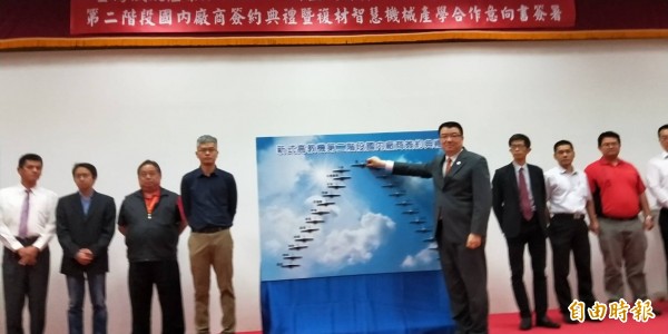 〔記者張軒哲/台中報導〕國防產業中「國機國造、自研自製」的「新式高級教練機」備受外界關注,去年在總統蔡英文見證下簽約,漢翔公司扮演整合供應鏈的領頭羊角色,24日進行第二階段簽約儀式,與23家零件、工具等供應商簽約,未來將生產66架新式高級教練機。目前新式高級教練機研製進度正常,預計明年9月30號將執行地面測試,2020年進行首飛。