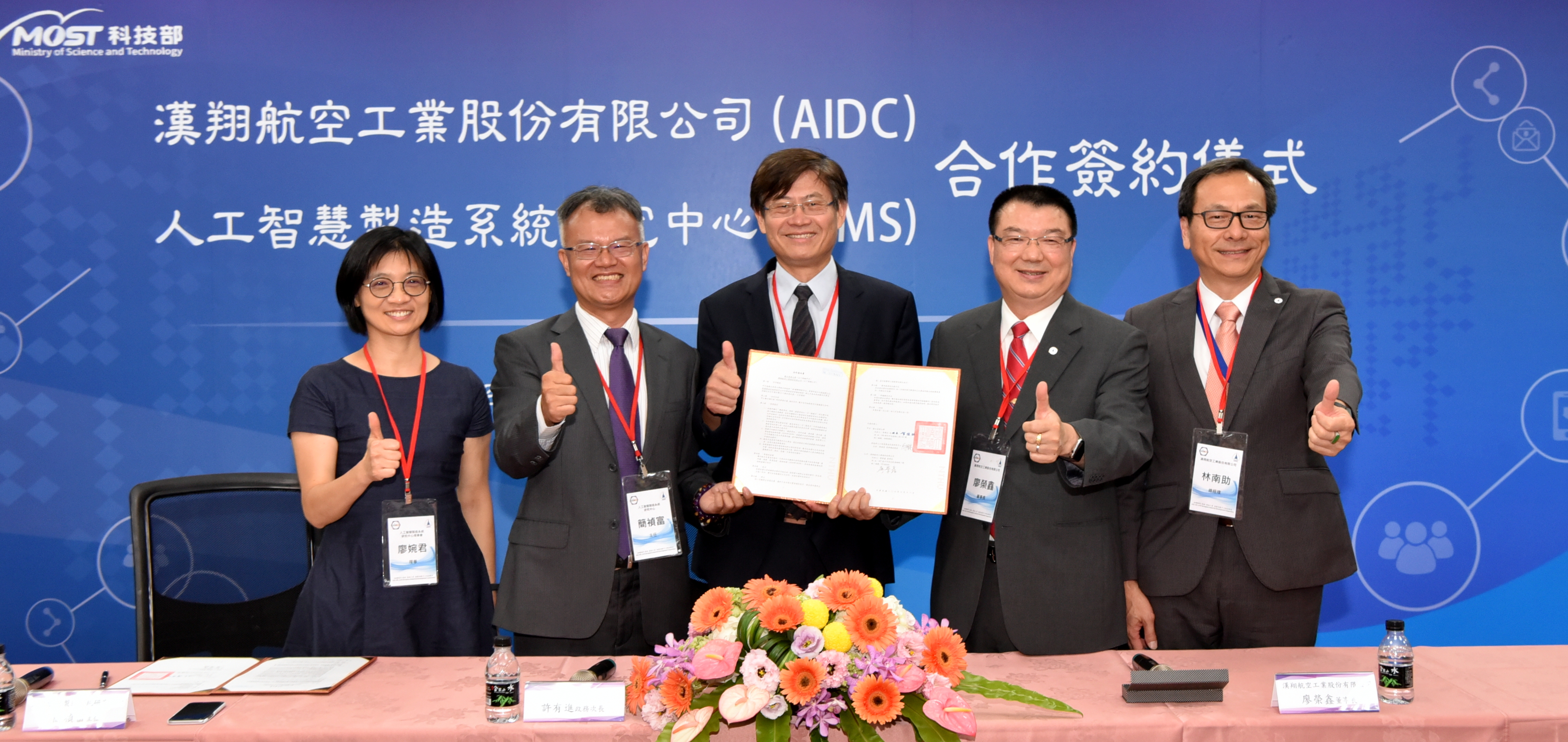 漢翔航空工業攜手清華大學「人工智慧製造系統研究中心(AIMS),共同推動航太智慧製造!漢翔今(12)日表示,在科技部政務次長許有進的見證下,漢翔董事長廖榮鑫昨(11)日與清華大學AIMS主任簡禎富,共同簽署合約,將展開航太智慧製造的具體合作。