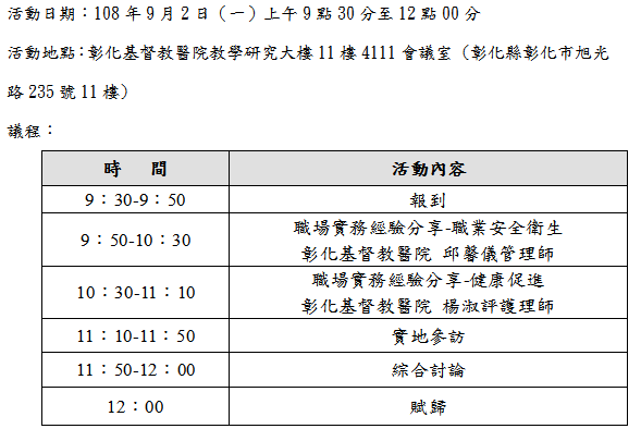 五、活動日期:108年9月2日(一)上午9點30分至12點00分