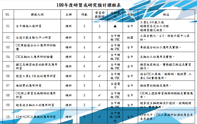 精科產學合作平台109年度研習或研究課程表